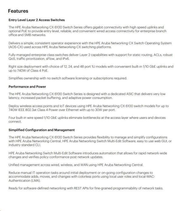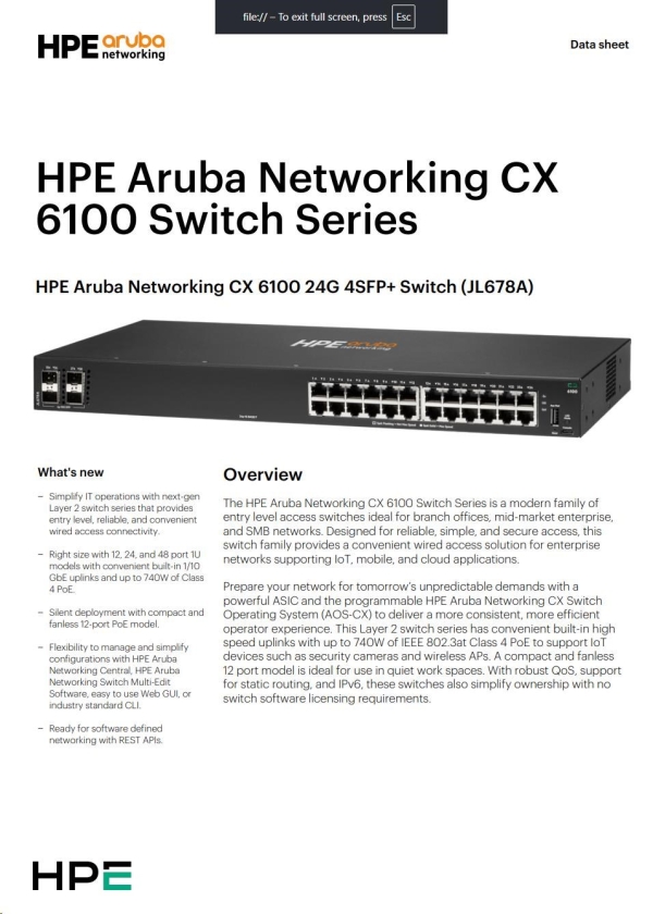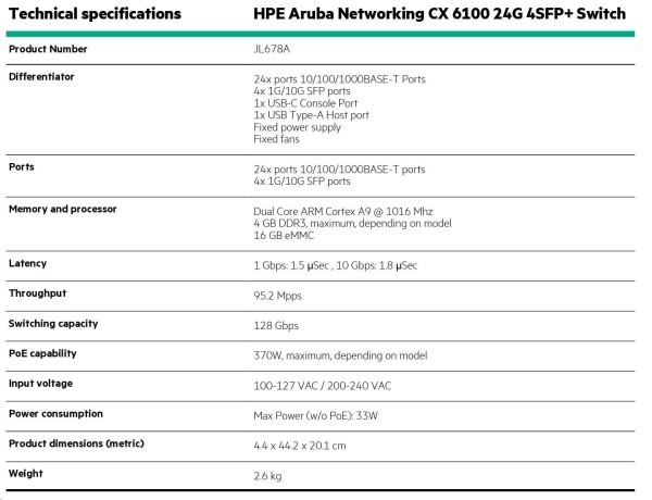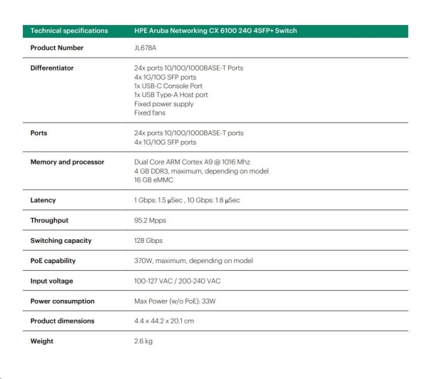 Aruba 6100 24G 4SFP+ Switch (JL678A)
