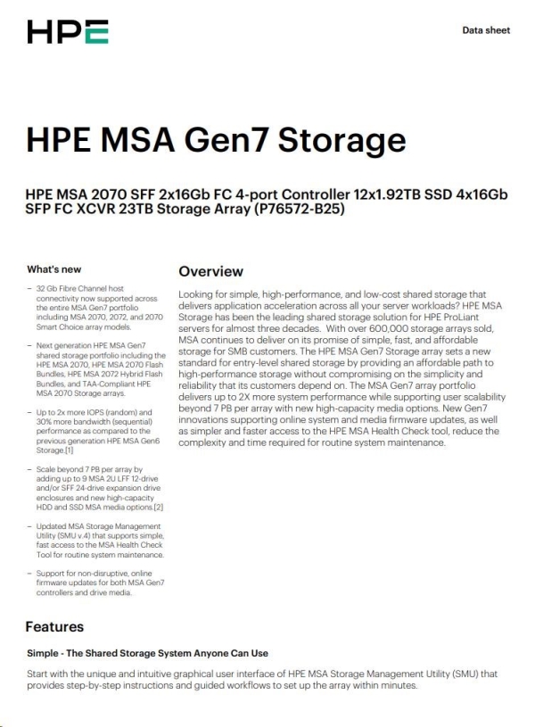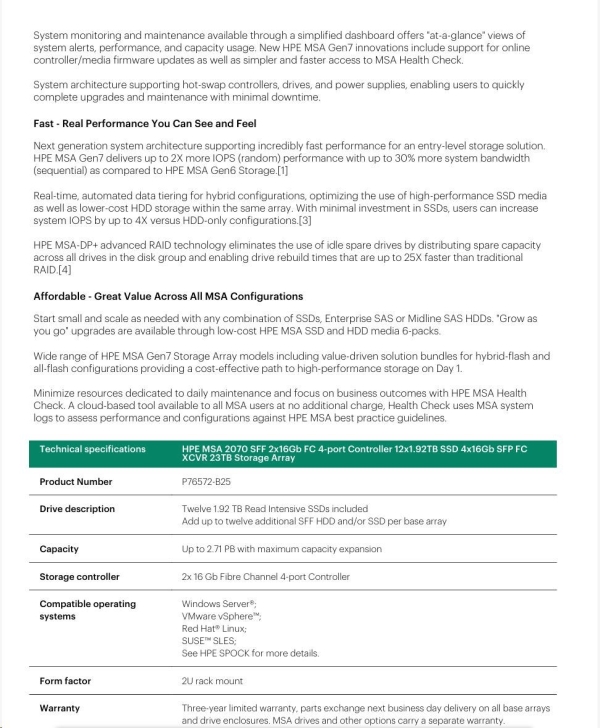 HPE MSA 2070 SFF 23TB (12x1.92TB R0Q47A, 2x16G FC4pController, 4x16Gb SFP-SFP-FCXCVR C8R24B) Smart Choice