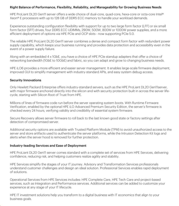 HPE PL DL20 gen11 6333P (3.1G/6C12T) 1x32G 4SFF 2x480GB VROC 1x1000W 4x1G NBD333 Smart Choice