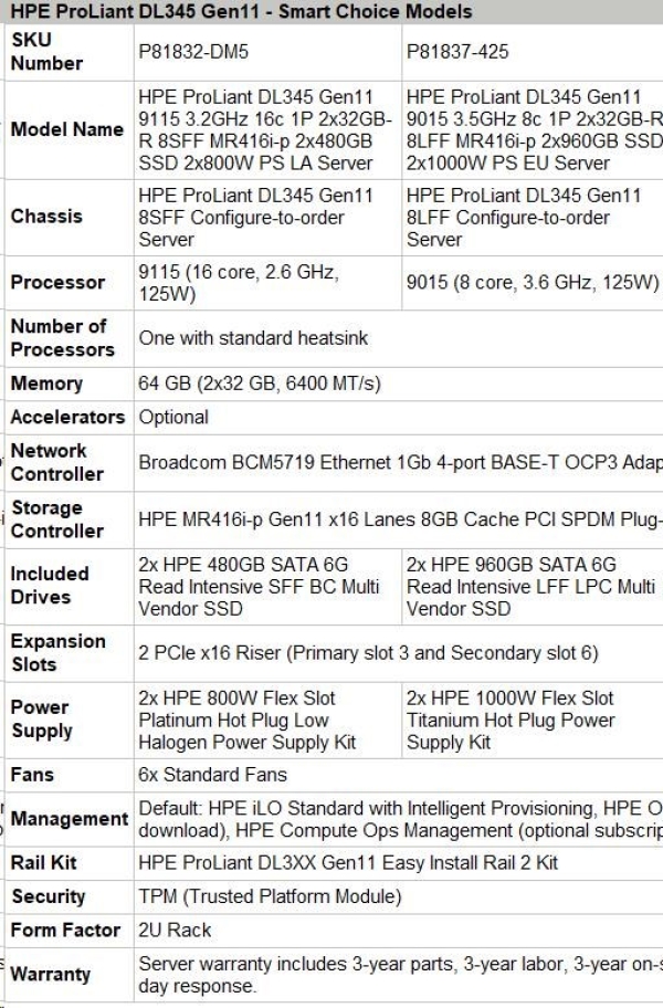 HPE PL DL345g11 AMD Epyc 9015 (3.6G/8C) 2x32G 2x960G 2x1000W MR416i-p 8LFF 4p1G Smart Choice (P81837-425)