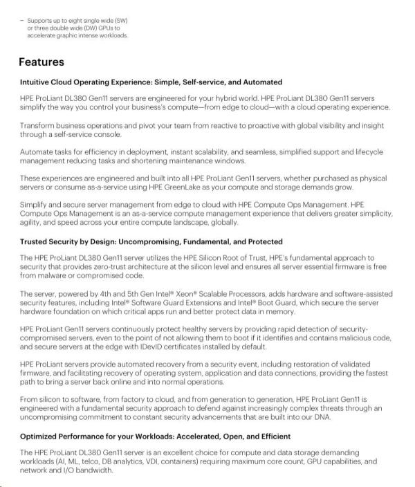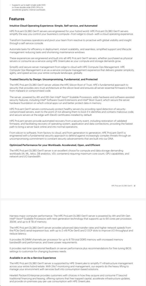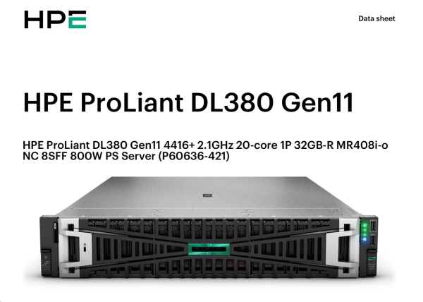 Model Name HPE PL DL380g11 4416+ (2.0/20C/38M/4800) 32G MR408i-o/4G 8-26SFF 1000Wtit 2x10G iLO6 base-T 2U NBD333