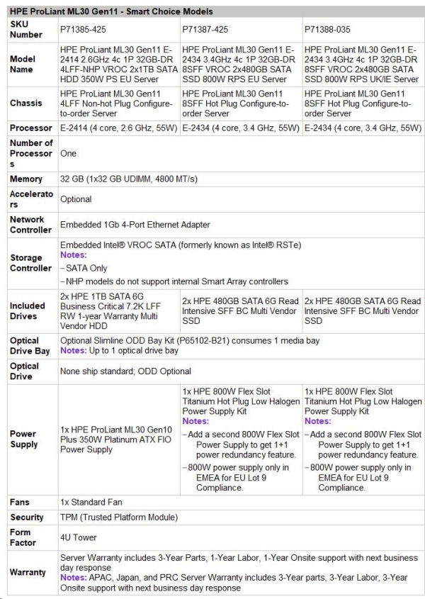 HPE ProLiant ML30 Gen11 E-2414 2.6GHz 4c 1P 32GB-DR 4LFF-NHP VROC 2x1TB SATA HDD 350W PS EU Server |