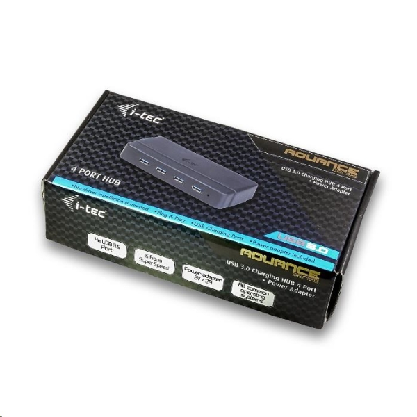 i-tec USB 3.0 Charging HUB 4 Port + Power Adapter je ideálním doplňkem pro každého, kdo má ve svém notebooku, ultrabooku nebo PC nedostatek USB portů a je nucen neustále připojovat a odpojovat svá oblíbená USB zařízení, jako jsou flash disky, mobilní telefony, tablety, digitální fotoaparáty, MP3 přehrávače, tiskárny, apod.