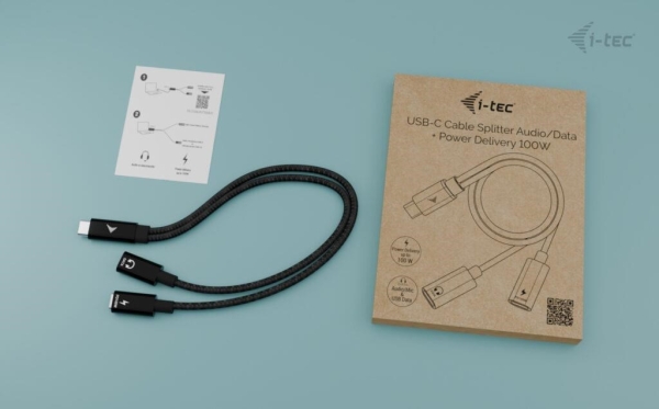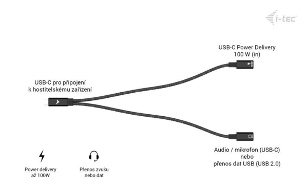 i-tec USB-C Cable Splitter Audio/Data + Power Delivery 100W