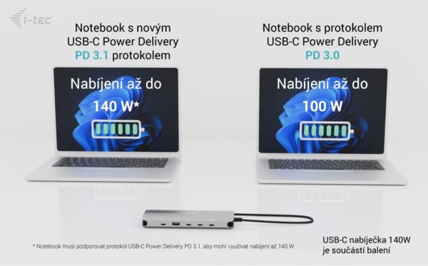 i-tec USB-C Metal Nano 3x Display Dock, 2x HDMI 1x USB-C video, PD 140W + Universal Charger 140W