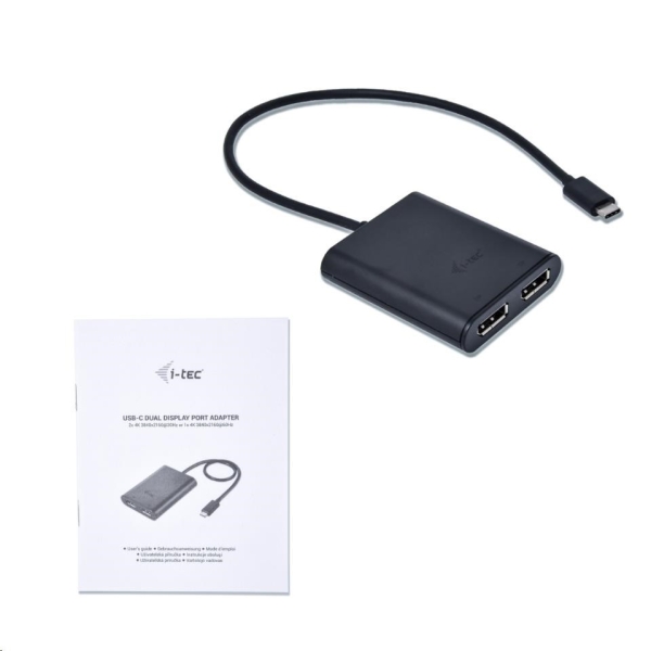 • i-tec USB-C 3.1 Dual 4K Display Port videadaptér s kabelem (30 cm)