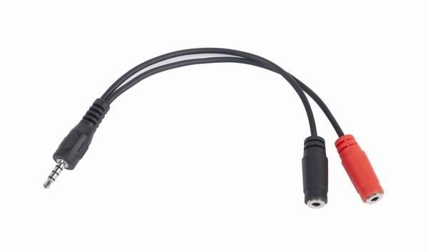 Kabel CABLEXPERT rozdvojka jack 3,5mm (4 pólový) na 2x3,5mm M/F, 20cm, černý