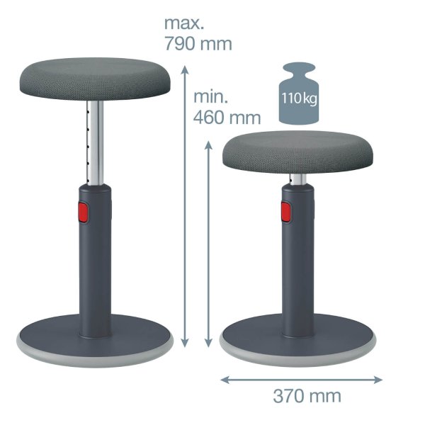 Ergonomická židle Leitz Ergo umožňuje flexibilitu pohybu mezi sezením a stáním při práci, podporuje pohyb svalů, zlepšuje držení těla a zvyšuje hladinu energie. Má zaoblenou základnu, která podporuje aktivní pohyb otáčením a houpáním. Zatímco pracujete, zároveň posilujete zádové svaly. Výšku lze snadno nastavit mezi 45-79 cm, stolička zůstává zůstane pevná a stabilní v jakékoli výšce. Stolička je pohodlná a praktická, má prodyšné 3D pěnové sedadlo potažené vzdušnou síťovinou a protiskluzovou základnu, která nepoškodí podlahu. Díky minimalistickému designu, matným povrchovým barvám a ergo řešení pomůže židle zlepšit zdraví a pracovní pohodu, a zároveň díky ní jednoduše vytvoříte správné a vhodné pracovní podmínky. Zkombinujte s dalšími produkty Leitz Ergo a získejte příjemný a flexibilní pracovní prostor, který vás udrží v pohybu a v pohodě po celý den. • Stylová a ergonomicky navržená židle vás udrží aktivní a produktivní po celý den • Střídání sezení a stání při práci podporuje přirozený svalový pohyb a minimalizuje negativní vliv sezení na naše zdraví • Zaoblená základna navádí k houpání a otáčení, které pomáhá protažení a posílení zádových svalů • Snadné nastavení výšky mezi 45-79 cm s červenými uvolňovacími tlačítky pro bezpečnost nastavení • Stolička zůstává pevná a stabilní v jakékoli výšce • Nízká váha usnadňuje přesun židle z místnosti do místnosti • Ergonomické sedadlo je vyrobeno z odolné 3D pěny pokryté vzdušnou síťovinou pro větší pohodlí • Protiskluzová základna pomáhá stabilitě židle a zároveň chrání podlahu • Nosnost až 110 kg • 5 let záruka • Obal bez plastů • Řada Leitz Cosy Ergo kombinuje styl s prvotřídní kvalitou a vytváří zdravé a aktivní pracovní prostředí