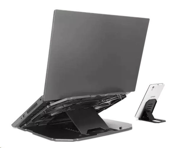 Stojan na notebook Lenovo 2 v 1 byl navržen tak, aby řešil dvě nepříjemné rozptýlení v jednom: přehřátí notebooku a bolestivé posezení u notebooku. Robustní neklouzavý stojan umožňuje ergonomicky naklonit notebook a telefon, aby se zabránilo bolestem zad a napětí, zatímco větrací otvory zlepšují jeho chlazení. Klíčové vlastnosti *Ergonomický design s 10 úrovněmi nastavení od 0 do 54 stupňů *Další stojan na mobilní telefon pro multitasking *Odolná, lehká konstrukce s protiskluzovými gumovými povrchovými podložkami pro stabilní psaní *Čtvercový a dutý vyřezávaný design pro lepší proudění vzduchu a výkon *Skládací stojan, který můžete použít všude, kam vás život zavede *Podpora notebooků do 15 palců Technické parametry *Rozměry: 290,6 x 265,6 x 15,1 mm *Hmotnost: 522 g *Barva: Černá