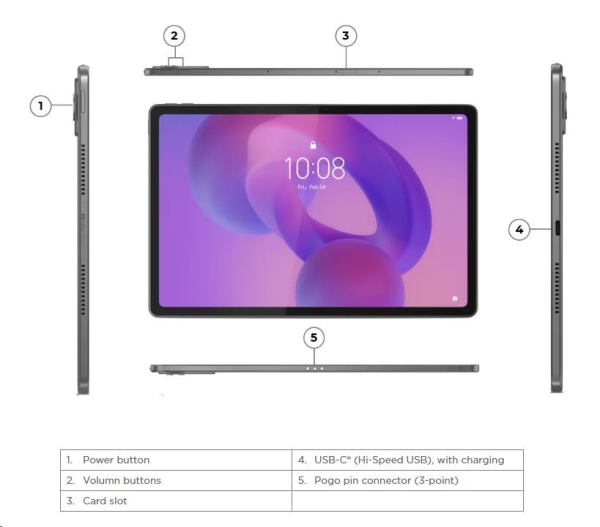 Lenovo Idea Tab Plus * IP52 * Low Blue Light * Flicker Free Operační systém: Android™ 15 nebo novější Procesor: MediaTek Dimensity 6400 (8jádrový procesor, 2x A76@2,5 GHz + 6x A55@2,0GHz) Paměť: 8GB integrovaná LPDDR4x Pevný disk: 256GB UFS 2.2 Rozšiřitelná paměť: microSD karta (až 2TB,exFAT) Čtečka paměťových karet: slot na microSD Grafická karta: integrovaná grafická karta Arm Mali-G57 MC2 Audio: 4x reproduktor, Dolby Atmos®, 2x mikrofon Fotoaparát: přední 8MP/zadní 13MP Senzory: * akcelerometr * okolní světlo (ALS) * Hallův senzor Displej: dotykový 12,1'' 2,5K (2560x1600) IPS 600 nitů (typicky)/800 nitů (HBM), 96% DCI-P3, 90 Hz Bezdrátová komunikace: * WLAN + Bluetooth (Wi-Fi® 5, 802.11ac 1x1 + BT v5.2) * GPS + GLONASS + Galileo Baterie: integrovaná 10200mAh Napájení: ne Porty: * 1× USB-C® 2.0 (podpora přenosu dat a nabíjení) * 1× slot na microSD kartu * 1× konektor Pogo pin (3bodový) Barva: Luna Grey Rozměry: 278,8×181,05×6,29mm bez kamery Hmotnost: cca 530g Balené příslušenství: pero Lenovo® Tab Záruka: 2 roky Odkaz na stránku výrobce: https://psref.lenovo.com/Detail/Idea_Tab_Plus?M=ZAG70118CZ