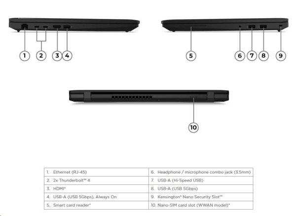 1x Čtečka SmartCard 1x Nano-SIM card slot (WWAN modely) |