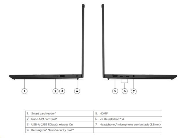 | Volitelné Porty | • 1x Smart card reader • 1x Nano-SIM card slot (WWAN modely) |