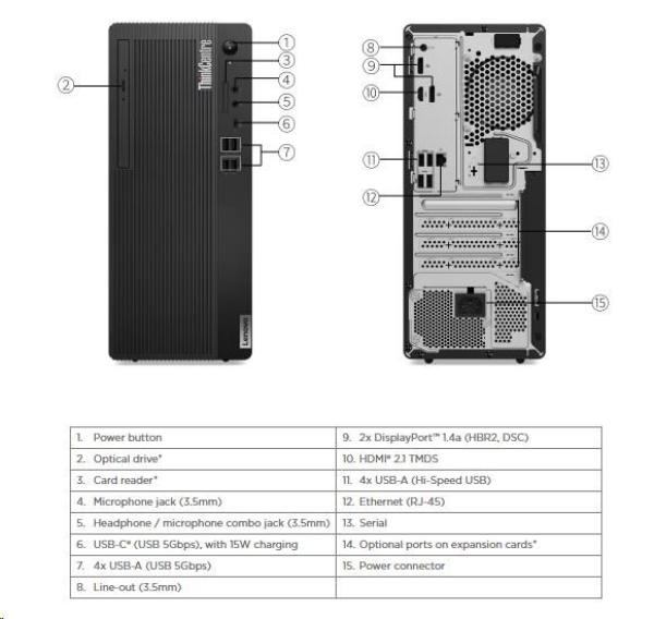 RJ-45, USB 2.0, LAN, USB 3.2, DisplayPort, HDMI, USB Type-C, 3.5mm Jack
