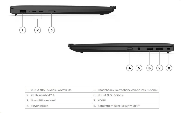 Wi-Fi, 5G, BlueTooth, Podsvícená klávesnice, Web kamera, Trackpoint, Touchpad, Dotykový displej, Čtečka otisků prstů