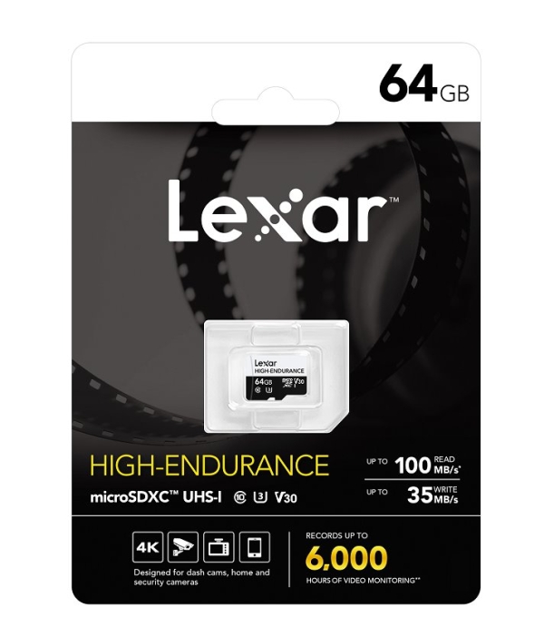 Karty Lexar High-Endurance jsou speciálně navrženy pro dlouhodobé sledování videa pomocí autokamer, domácích bezpečnostních nebo sledovacích kamer.