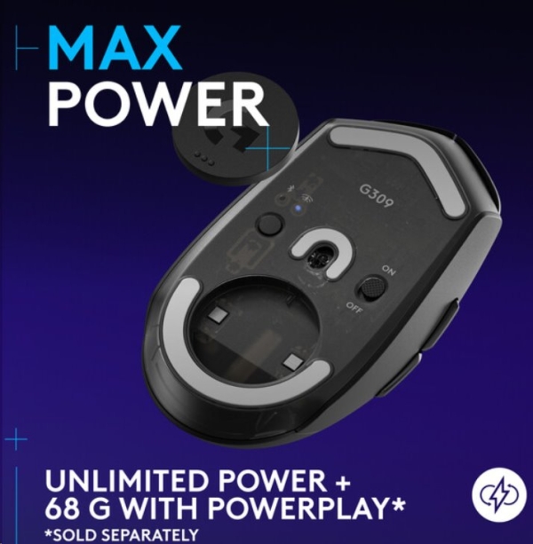 - Minimální hmotnost: Logitech G309 LIGHTSPEED je lehká herní myš, která váží pouhých 86 g s přiloženou baterií AA nebo 68 g (bez baterie) při použití bezdrátového nabíjecího systému POWERPLAY.