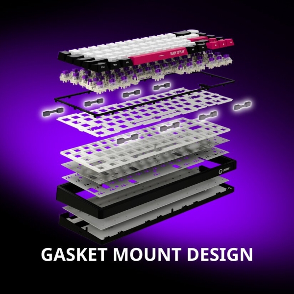 Důmyslný systém uchycení s těsněním poskytuje optimální pohodlí při psaní a tlumení zvuku. Každý stisk klávesy je plynulý a konzistentní, což zlepšuje zážitek z hraní i psaní.