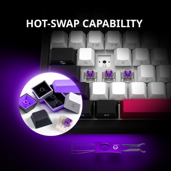 Přizpůsobte si psaní díky přepínačům vyměnitelným za provozu. Klávesnice podporuje snadnou výměnu spínačů bez nutnosti pájení, což vám umožní experimentovat s různými typy spínačů nebo je okamžitě vyměnit. Ideální pro nadšence, kteří si chtějí vyladit pocit a zvukový podpis klávesnice.