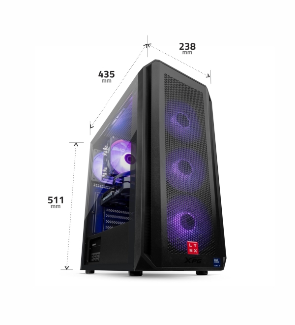 Základem sestavy je deska s čipovou sadou H810 osazená 10 jádrovým procesorem Intel Ultra 5, který disponuje technologií HyperThreading pro plynulejší multitasking, pracující na frekvenci 3.3 GHz, nebo až 4.9 GHz s technologií turbo. Paměti RAM značky Kingston jsou pro sestavy LYNX standardem, v této sestavě se jedná o paměti s kapacitou 32 GB DDR4 (2x 16GB). Plynulý obrazový výstup je zajištěný grafickou kartou NVIDIA GeForce RTX 5060, která disponuje 8GB paměti GDDR7. V této sestavě nebrzdí ani uložiště je zde SSD disk 1 TB M.2 PCIe NVMe pro veškerá potřebná data a software. Dostatečné napájení zajištuje 550W zdroj. Sestava je dodávaná včetně nového operačního systému Windows 11 Home.