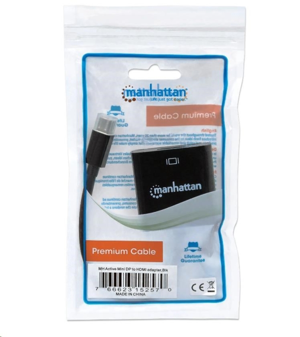 Adaptéry Manhattan Active Mini DisplayPort na HDMI umožňujú rýchle a pohodlné pripojenie medzi zdrojom médií vybaveným rozhraním Mini DisplayPort a zobrazovacím káblom HDMI. Tento aktívny adaptér prekonáva obmedzenia video/grafickej karty bez DP++ (dual-mode) a konvertuje signál na zobrazenie. Ideálne pre hry na viacerých obrazovkách, digitálne nápisy v maloobchodných displejoch, finančný trh a ďalšie aplikácie. Poniklované kontakty a úplné tienenie pomáhajú adaptérom Manhattan Active Mini DisplayPort na HDMI zabezpečiť čistý a stabilný prenos videa v multimediálnych aplikáciách UHD, v domácnostiach a kanceláriách. Odolné PVC plášte a tvarované topánky s odľahčením ťahu pomáhajú zabezpečiť, aby pripojenia zostali neprerušované a stabilné.