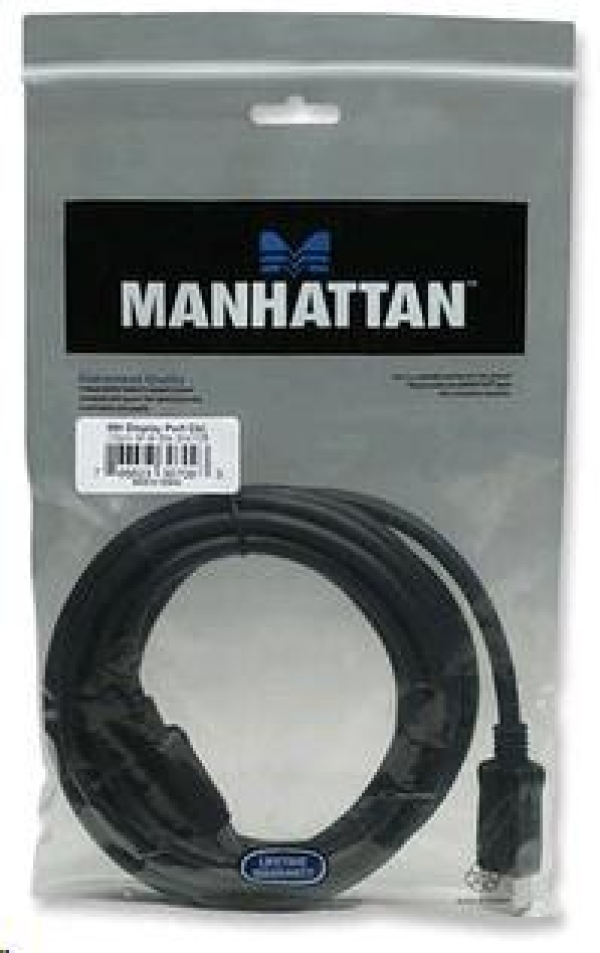 MANHATTAN DisplayPort Cables provide a single-cable solution that delivers both high-definition digital audio and video signals between desktop and notebook computers and an output device. With 10.8 Gbps bandwidth (1080 Mbps), DeepColor and 24-bit, 8-channel uncompressed audio capability, the 20-pin connector is small, compact and ideal for use with DisplayPort-equipped computers, flat-panel displays, slim-profile devices and many consumer electronics including Blu-ray players and game consoles. Full foil and braided shielding, molded boots with strain relief, protective PVC jackets and gold-plated connections help MANHATTAN DisplayPort Cables provide maximum conductivity and clear, crisp signal transmissions with reduced EMI interference and distortion.