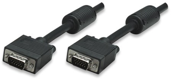 MANHATTAN kabel SVGA k monitoru s feritovými jádry, HD15 Male / HD15 Male, 1.8m, Black