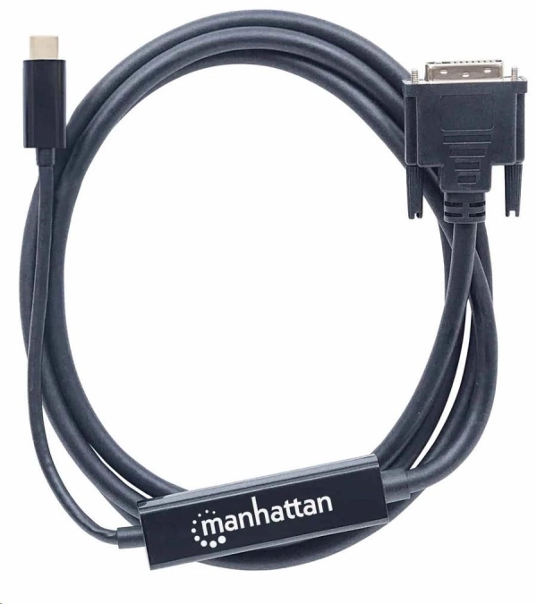 Adaptérový kábel Manhattan USB-C na DVI prenáša video signál USB do projektora DVI, plochého displeja, televízora alebo podobného zariadenia. Zabudované obvody umožňujú nadšencom digitálnych médií jednoducho si vychutnať multimediálny obsah založený na USB na HD displeji alebo televízore pri súčasnom príjme A/V na zdroji. Jeho schopnosť vysokého rozlíšenia podporuje rozlíšenie až do 2520x1600@60Hz a 1080p, aby mohol slúžiť pre širokú škálu rozlíšení v mnohých zariadeniach a HD aplikáciách vrátane školení, maloobchodu a obchodných výstav. Zdrojové zariadenie musí podporovať režim DP Alt. Bez problémov prenáša digitálny obsah uložený v smartfóne, tablete, ultrabooku alebo notebooku na displej so vstupom DVI.