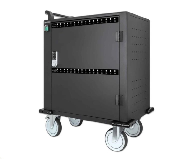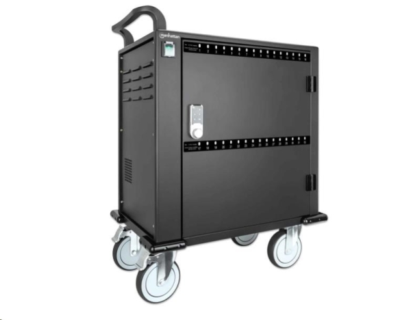 MANHATTAN nabíjecí vozík - 32 portů, 576 W, přepěťová ochrana, tichá ventilace, kovové pouzdro, černá