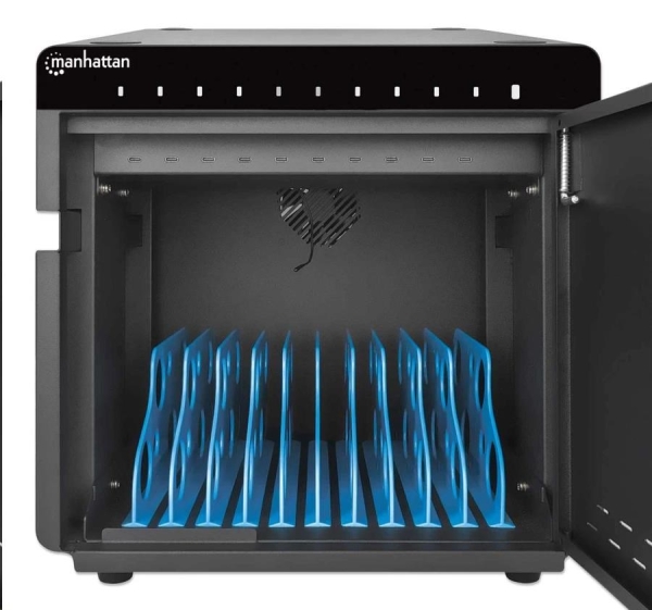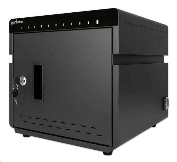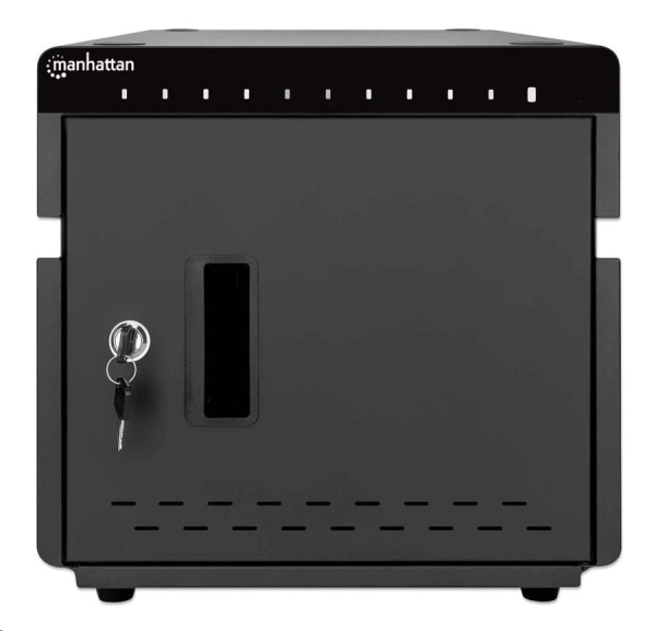 MANHATTAN stolní nabíjecí skříň - 10 portů, 180 W, přepěťová ochrana, tichá ventilace, kovové pouzdro, černá