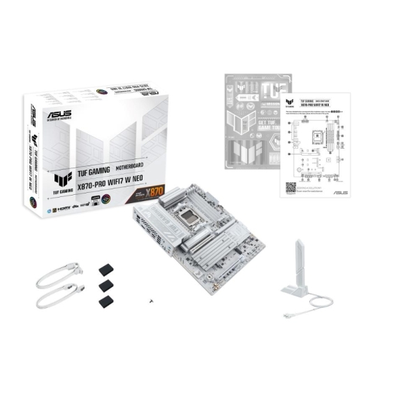 ASUS TUF GAMING X870-PRO WIFI7 W NEO takes all the essential elements of the latest AMD Ryzen™ processors and combines them with game-ready features and proven durability. Engineered with an upgraded power solution and a comprehensive cooling system, this motherboard goes beyond expectations with rock-solid and stable performance for marathon gaming. TUF GAMING motherboards also undergo rigorous endurance testing to ensure that they can handle conditions where others may fail. This platform delivers the power and connectivity that advanced AI PC applications demand.