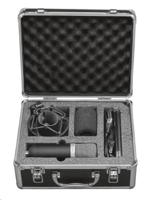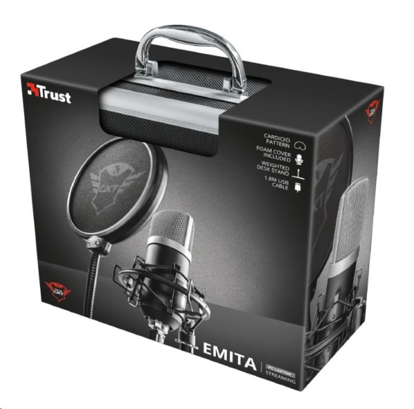 Profesionální studiový mikrofon USB v přepravním pouzdru s přesnou kardiodovou charakteristikou záznamu pro streamování, podcasting, voiceover a akustickou hudbu * Digitální připojení USB, funguje ihned v jakémkoliv stolním či přenosném počítači. * Bohatá, hutná a jasná zvuková reprodukce, pro záznam hlasového projevu a akustických nástrojů * Skvělé pro podcasty, video blogy, voiceover, záznam hudby či streamování na portálech YouTube, Twitch a Facebook. * Kardiodová charakteristika záznamu pro vysoce přesný záznam a jasný zvuk bez šumu pozadí * Mikrofon je dodáván s odolným hliníkovým přepravním pouzdrem pro bezpečné uložení a přepravu * Včetně těžkého kovového stojánku, vysoce kvalitního antivibračního držáku a velkého dvojitého pop filtru. * Odpojitelný kabel USB, 1,8 m Další informace * Frequency range: 18Hz-21KHz * Hmotnost: 300g Obsah balení * Přepravní pouzdro * Mikrofon * Kabel USB * Pop filtry * Antivibrační držák * Stolní stojánek * Návod k použití Systémové požadavky * Stolní nebo přenosný počítač s portem USB * Windows 7, 8, 10 Více na webu výrobce: http://www.trust.com/en/product/21753-gxt-252-emita-streaming-microphone