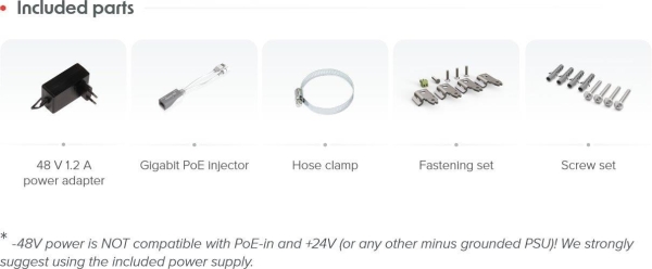 Napájení přes PoE:802.3af, 802.3at, 24 .. 57V DC