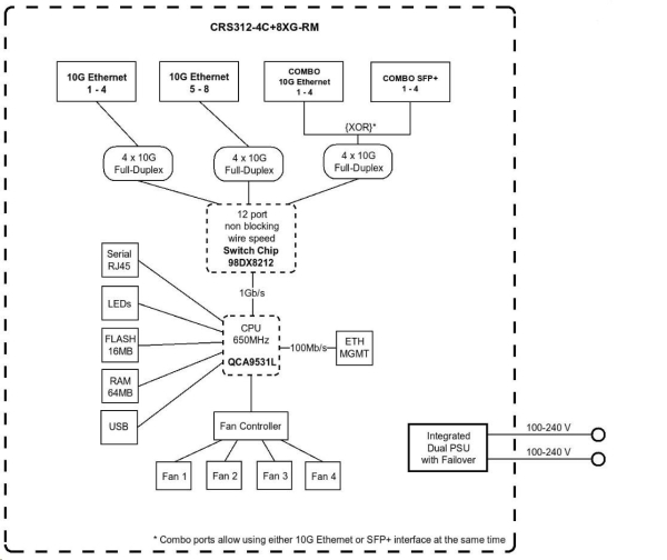 MikroTik CloudRouterSwitch CRS312-4C+8XG-RM