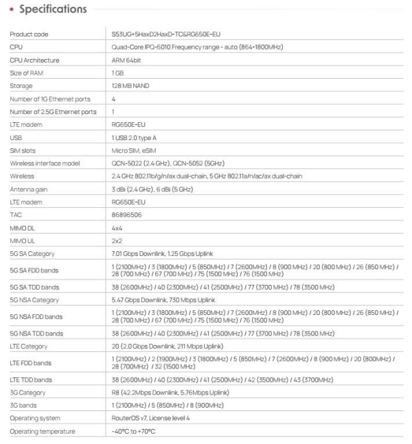 5G SA Category: 7.01 Gbps Downlink, 1.25 Gbps Uplink