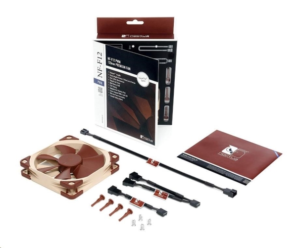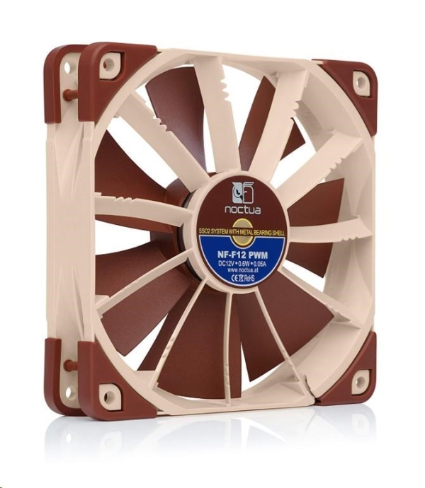ventilátor, tichý, rozměry 120x120x25mm, hlučnost 18.6 až 22.4dB, průtok 74.3 až 93.4 m3/h, 300 až 1500 otáček, optimalizovaná geometrie a povrch 7 lopatek , samostabilizující olejové ložisko