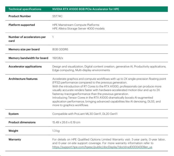 NVIDIA RTX A1000 8GB PCIe Accelerator