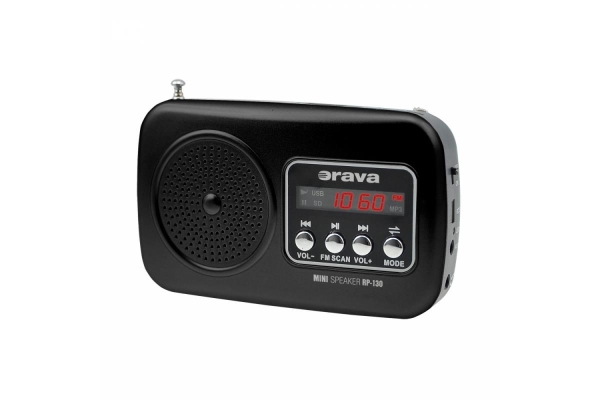 Orava RP 130 přenosný rádiopřijímač, SD Karta, výstup na sluchátka, LED displej, FM rádio, USB, AUX vstup, černý