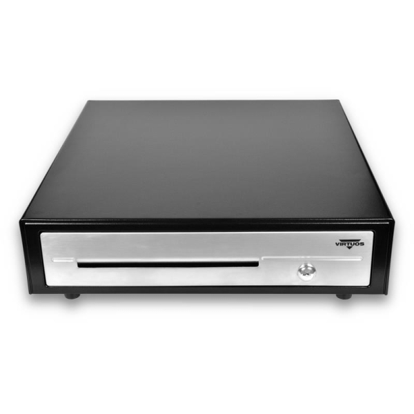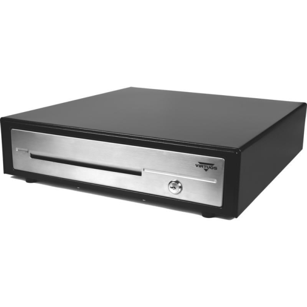Pokladní zásuvka C430D - s kabelem, kovové držáky, nerez panel, 9-24V, černá