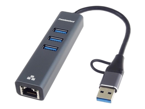 PremiumCord Adapter USB-C a USB-A na Gigabit 10/100/1000Mbps + 3x USB3.2 konektor