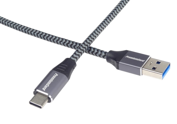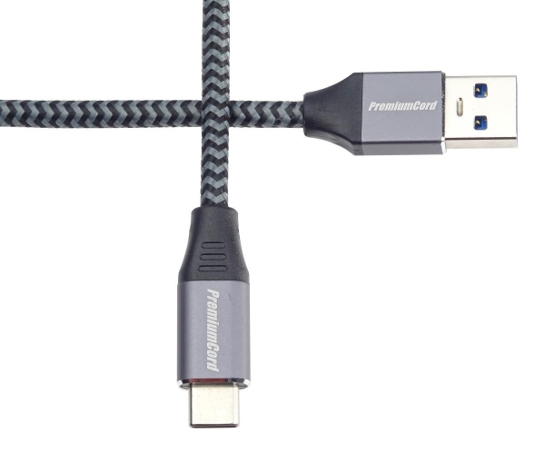 PremiumCord kabel USB-C - USB 3.0 A (USB 3.1 generation 1, 3A, 5Gbit/s) 0,5m bavlněný oplet a kovové hliníkové konektory