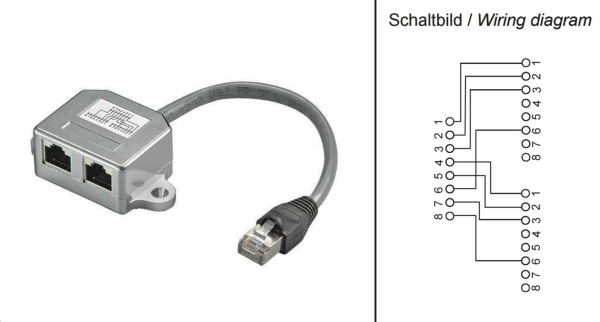 - adapter pro spojení a rozdvojení dvou připojení k počítačové síti po jednom TP kabelu