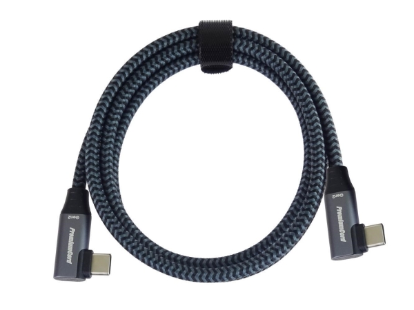 PremiumCord USB-C 2x zahnutý 90° kabel ( USB 3.2 GEN 2x2, 5A, 100W, 20Gbit/s ) hliníkové krytky konektorů, bavlněný oplet, 3m