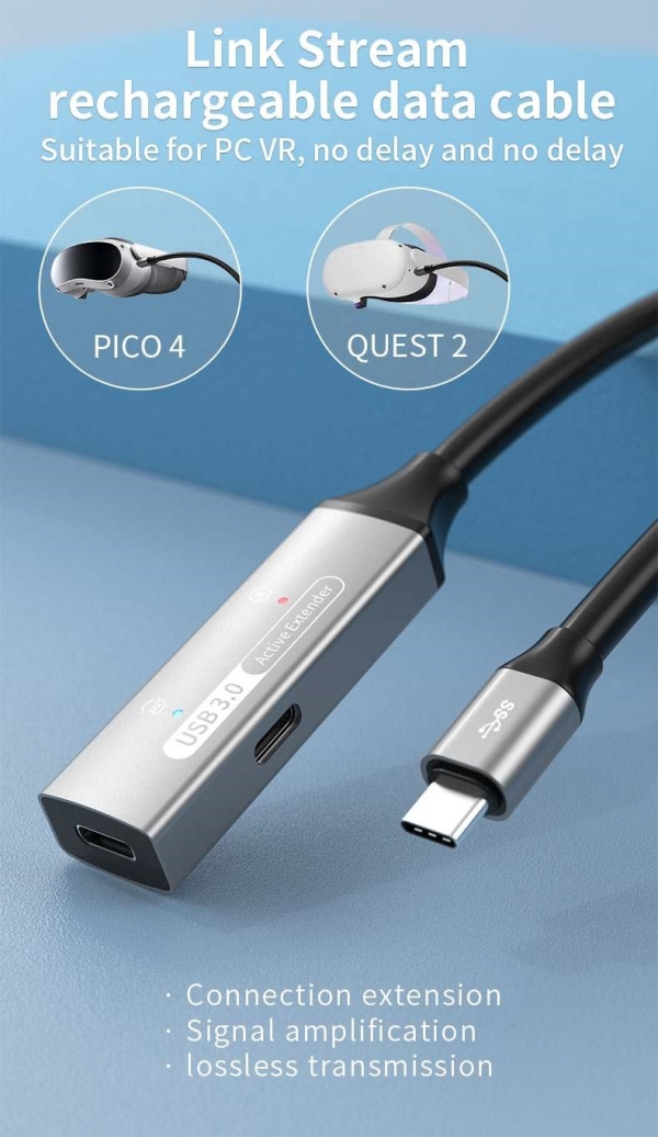 The cable is suitable for extending the USB-C cable by another 10m. The standard USB-C cable is limited to a maximum length of 5m. With the help of a USB-C repeater, the passive cable can be extended by another 10 m