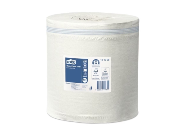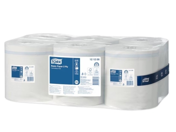 Tork M2 papírová utěrka Basic se středovým odvíjením 2vrstvá recykl bílá 6 rolí 121,5m