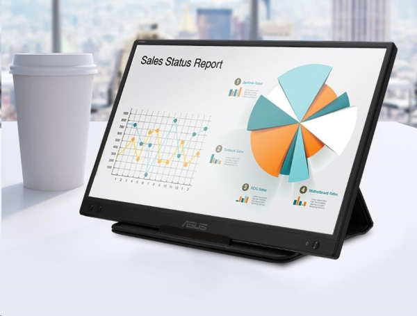 *Přenosný USB Monitor- 15.6 inch *ASUS Eye Care *Flicker Free, Blue Light Filter, Anti-glare surface Typ obrazovky: IPS Podsvícení: LED Úhlopříčka [palce]: 15.6 Rozlišení: 1920 x 1080 Rozteč bodu [mm]: 0.179 mm Obnovovací frekvence [Hz]: 60 Hz Poměr stran: 16:9 Povrch displeje: Non-Glare Jas [cd/m2]: 250 Kontrast: 800:1 Odezva [ms]: 5ms (GTG) Pozorovací úhly (Horizontál/Vertikál): 178°/ 178° Reproduktory: Ne Konektory: *USB-C x 1 Napájení: 100-240V, 50/60Hz Spotřeba [W]: <8 W Power Saving Mode [W]: <0.5 W Barva: černá Rozměry (bez stojanu, ŠxVxH mm): 360.14 x 225.64 x 11.8 mm Hmotnost [kg]: 0,780 Záruka: 36 měs. https://www.asus.com/Displays-Desktops/Monitors/ZenScreen/ASUS-ZenScreen-MB166C/