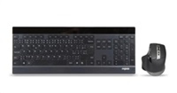 Tato pokročilá stolní sada kombinuje prvotřídní funkce a materiály se stylovým ultra tenkým 4 mm designem klávesnice. Tělo klávesnice je vyrobeno z kartáčované nerezové oceli a hliníkové slitiny a je nejen robustní, ale také dodává eleganci každému stolnímu počítači. Klávesnice je vybavena multimediálními klávesami, které umožňují rychlý a snadný přístup ke všem důležitým multimediálním funkcím.