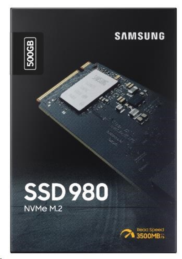 SAMSUNG 980 M.2 NVMe SSD 500GB PCIe 3.0 x4 NVMe 1.4 (čtení max. 3100MB/s, zápis max. 2600MB/s)