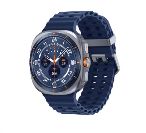 Galaxy Watch Ultra (2025) Titanium Blue 47mm LTE Stvořeno pro výjimečnost Hodinky Galaxy Watch Ultra mají ciferník o velikosti 47 mm, pouzdro z titanu používaného v letectví a gumový řemínek s efektem opotřebování. Tohle jsou hodinky, které uchvátí okolí, a zároveň ikonický sportovní kousek. Částečně hodinky, částečně virtuální asistent Personalizované koučování je u hodinek Galaxy Watch Ultra samozřejmostí. Energy Score shrne všechny tvé údaje do jednoho čísla, takže poskytne jasnou představu o následujícím dni. Voděodolnost a10 ATM Připravené a testované podle vojenského standardu – představujeme hodinky Galaxy Watch Ultra. Vydrží teplotní rozpětí od -20 °C do 55 °C, nezaleknout se ani nadmořské výšky od -500 m do 9 000 m a s odolností 10 ATM proti tlaku ve sladké nebo slané vodě do 100 m se na ně můžeš v každé situaci spolehnout. Systém duální GPS Zcela nový procesor Exynos podporuje moderní funkce AI a také zajišťuje, aby precizní systém duální GPS a BioActiveSensor nové generace mohly fungovat na plný výkon. Operační systém: Wear OS Powered by Samsung Displej - úhlopříčka [palce]: 1,5'' (37,3 mm) - Super AMOLED Displej - rozlišení [pix]: 480 × 480 Paměť: *Paměť (GB): 2 *Úložiště (GB): 64 *Dostupné úložiště (GB): 50.0 Rychlost CPU: 1,6 GHz, 1,5 GHz| Pětijádrový procesor Konektivita: *Bluetooth v5.3 *NFC *Wi-Fi 802.11a/b/g/n (2,4 GHz + 5 GHz) *GPS, Glonass, Beidou, Galileo Voděodolnost: 10 ATM Senzory: Akcelerometr, Barometr, Bioelectrical Impedance Analysis Sensor, Elektrický senzor srdeční aktivity, Gyro senzor, Geomagnetický senzor, Infračervený snímač teploty, Světelný senzor, Optický snímač tepové frekvence Funkce: *Podpora MP3, M4A, AAC a dalších audio formátů *eSIM *3G / 4G konektivita *Režim úspory energie *Always On Display Síť: Embedded-SIM *Infra: 3G WCDMA, 4G LTE FDD, 4G LTE TDD *3G UMTS: B1(2100), B2(1900), B4(AWS), B5(850), B8(900) *4G FDD LTE: B1(2100), B2(1900), B3(1800), B4(AWS), B5(850), B7(2600), B8(900), B12(700), B13(700), B14(700), B18(800), B19(800), B20(800), B25(1900), B26(850), B28(700), B66(AWS-3), B71(600) *4G TDD LTE: B40(2300) Baterie: *Typ: Nevyjímatelná *Kapacita [mAh]: 590 *Výdrž při běžném používání (hodiny, bez funkce Always On Display): Až do 80 *Výdrž při běžném používání (hodiny, s funkcí Always On Display): Až do 60 *Typická doba používání (v režimu úspory energie, hodiny): Až do 100 *Venkovní trénink s GPS (v režimu úspory energie při cvičení, hodiny): Až do 48 Rozměry [mm]: 47.4 x 47.1 x 12.1 Hmotnost [g]: 60.5 Obsah balení: *Galaxy Watch Ultra (2025) *Řemínek Marine Band * Nabíjecí kabel pro chytré hodinky Záruka: 24 měs.
