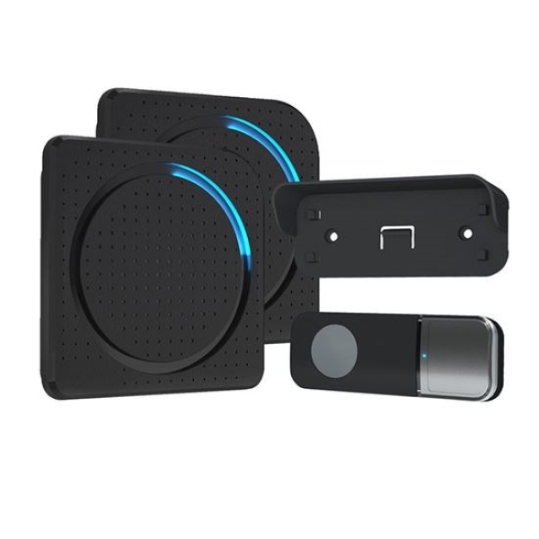 Bezdrátové zvonky stačí zapojit do běžné zásuvky, není potřeba žádné vrtání ani tahání kabelů. Dosah až 200 metrů v otevřeném prostoru zaručuje bezproblémové fungování i ve větších domech, kancelářích nebo provozovnách. Oba přijímače jsou spárovány s tlačítkem a zvyšují pokrytí signálem, např. jeden v přízemí a druhý v patře domu, či ve vzdálenější místnosti. Vysílač je napájen baterií a snadno se upevní na zeď nebo dveře. Stříška vysílače zvyšuje odolnost proti dešti a zároveň chrání před přímým slunečním světlem, to prodlužuje jeho životnost.