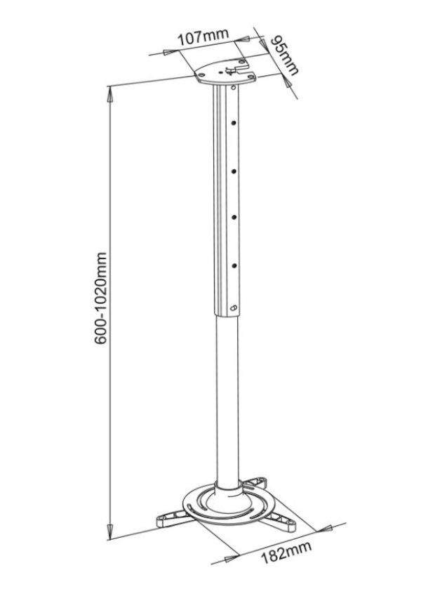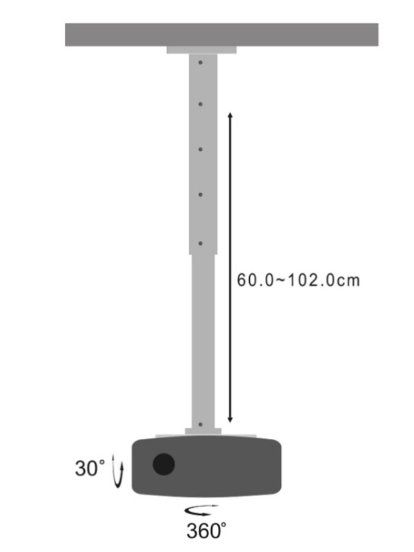 Univerzální stropní výsuvný držák umožní snadné a bezpečné umístění dataprojektoru do pozice, která bude vyhovovat vašim požadavkům.